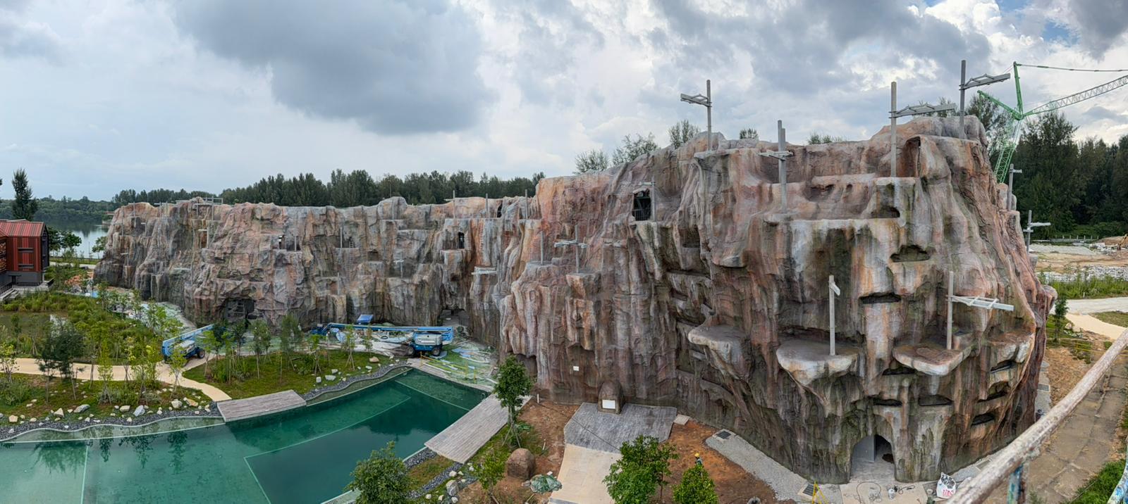 Pico Play designed and constructed a 170-meter-long, 20-meter-high GFRC cliff wall. By pre-fabricating the panels in our Malaysia facility, we accelerated the installation process, while our skilled artists meticulously carved and painted the rockwork to authentically replicate Singapore’s natural formations.